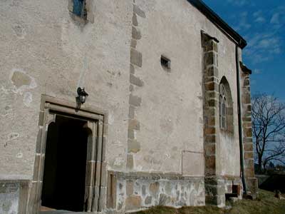 Dies ist die Südseite der Kirche, rechts hinten (leider Außerhalb des Bildbereichs) befindet sich, in Verbindung mit der Ummantelungsmauer, das immer noch gefüllte Gebeinshaus.