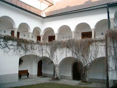 Der Arkadenhof mit Säulen im Erdgeschoß