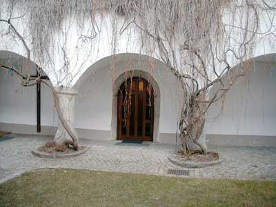 Eingang zu den Schulklassen. Davor die Säulen des Arkadenhofs