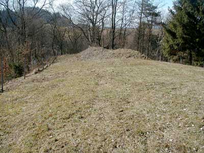 Hier die äußerste Spitze des Sporns, hinter der kleinen Kapelle. Hier befand sich vermutlich einst die kleine Burg.