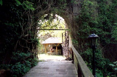 Malerischer Torbogen zum Gartenbereich in dem im Sommer auch Feste stattfinden