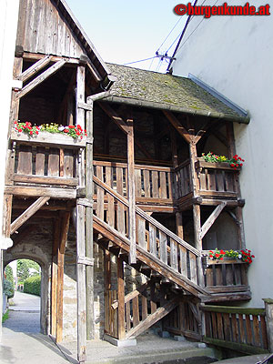 Hölzerne Freitreppe an der alten Stadtmauer direkt neben dem Ortsmuseum.